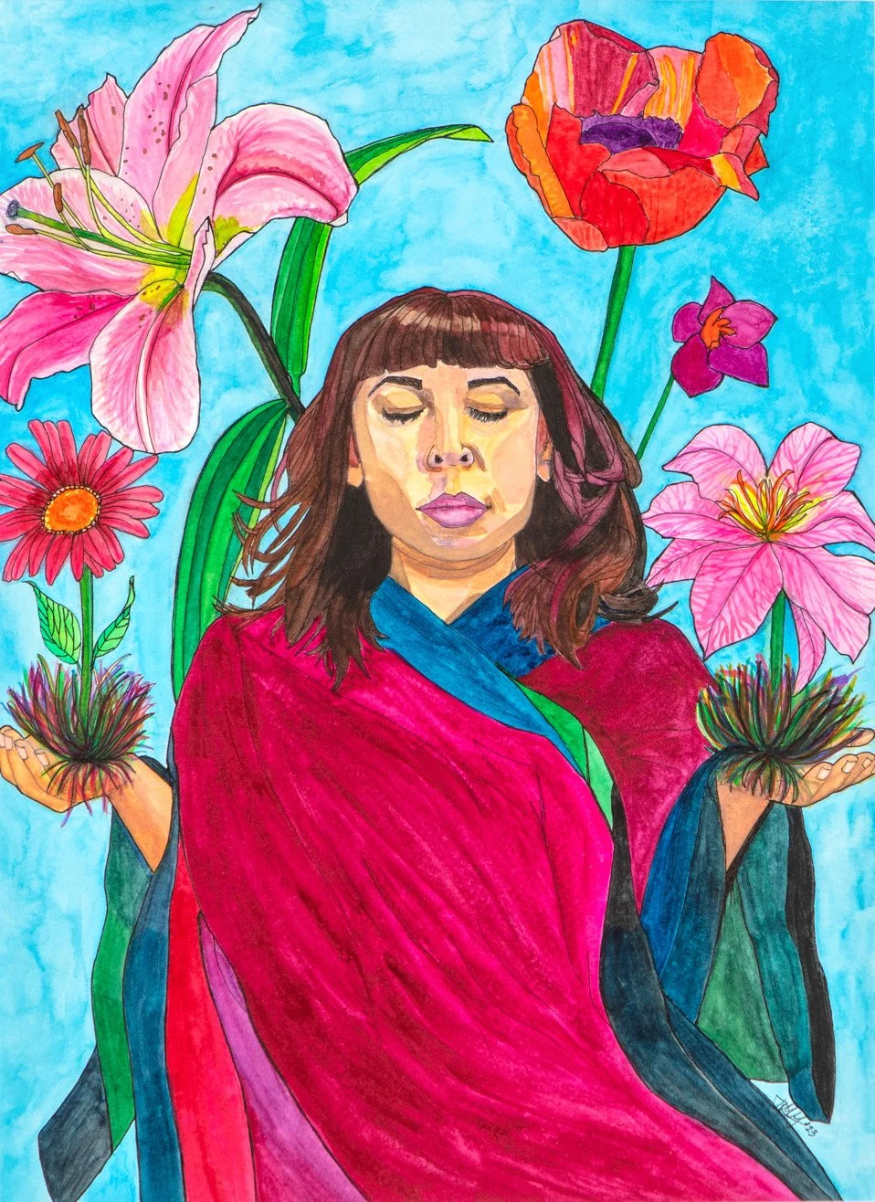 A Quiet Flourishing, watercolor and pen, 11”x15”, 2023
